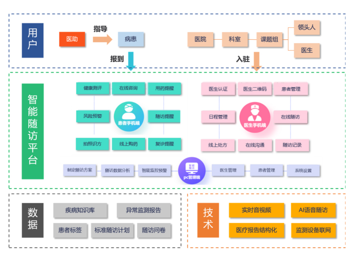 天坦智能開發(fā)的慢病管理運(yùn)營服務(wù)是一套完整的心血管隨訪標(biāo)準(zhǔn)體系,配合適用性極強(qiáng)的醫(yī)生端可配置界面,滿足絕大多數(shù)開展冠心病介入的醫(yī)療機(jī)構(gòu)需求,同時,基于專家隨訪團(tuán)隊之間的協(xié)作,建立上下聯(lián)動的醫(yī)生互動機(jī)制,為隨訪的患者提供專業(yè)的管理方案。匹配有人工智能為核心的隨訪管理機(jī)制,可自動化發(fā)送患者所需要信息,量表等隨訪內(nèi)容,具備機(jī)器學(xué)習(xí)功能,針對不同醫(yī)院形成不同模式的隨訪系統(tǒng)配置,匹配個性化的醫(yī)院隨訪體系,最終以患者交流平臺,建立以患者需求為中心的線上服務(wù)體系,包括專家線上咨詢、藥品直送、可穿戴式設(shè)備居家監(jiān)護(hù)、護(hù)理居家康復(fù)及圍繞手術(shù)全周期的保險支付產(chǎn)品。形成以醫(yī)學(xué)+智能+個性化+支付功能為一體的新一代的慢病管理平臺。
