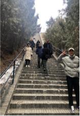 第二天早上9:00點,我們團體到達紅螺寺景區(qū),位于北京市懷柔區(qū)城北5公里的紅螺山南麓,距北京市區(qū)55公里,景區(qū)總面積800公頃,國家AAAA級旅游區(qū)。始建于東晉咸康四年(公元338)年,原名“大明寺”(明正統(tǒng)年間易名“護國資福禪寺”,因紅螺仙女的美妙的傳說,俗稱“紅螺寺”)。紅螺寺坐北朝南,依山勢而建,布局嚴謹,氣勢雄偉?,F(xiàn)在時節(jié)三九,北方冰天雪地,此時攀登由緩緩的山勢而上,身體慢慢散發(fā)熱量,爬到山頂已經是大汗淋漓,站在頂端俯視村莊,遠眺雁西湖畔、懷柔水庫,高矮錯落的房子......心境舒爽。