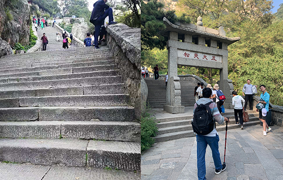 眼前泰山的巍峨,綠意蔥蔥的容貌,隨山勢(shì)而上的臺(tái)階,讓大家由衷贊嘆。大家摩拳擦掌,誓要做登頂?shù)谝粋€(gè)人,去感受那“浮在云霧中,一覽眾山小”的趣意。事實(shí)上,這個(gè)海拔1524米的天然氧吧給我們的肺的確做了一個(gè)很棒的spa,從內(nèi)到外的舒暢,從外到內(nèi)的滿足,感嘆工匠們巧奪天工的設(shè)計(jì)。