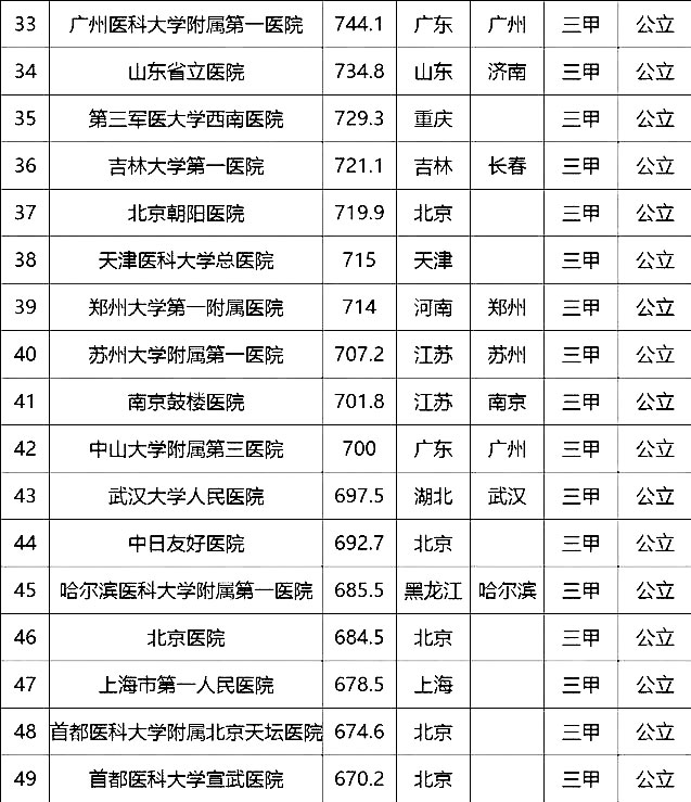 “100強”榜單中,入圍最多的三個省市分別是北京(16家醫(yī)院)、上海(13家醫(yī)院)、廣東(9家)。“100強”共覆蓋32個城市,包括4個直轄市(36家醫(yī)院)、23個省會城市(59家醫(yī)院)、5個地級市(5家醫(yī)院)。總體看,城市的醫(yī)院平均得分和上榜機構數(shù)有一定的相關性,上榜機構數(shù)多的城市一般得分均值較高,說明這些城市醫(yī)院整體實力較高。